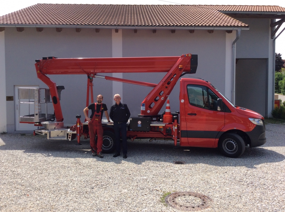 Wir gratulieren Thomas Kölbl zu seinem neuen STEIGER® TBR 250. Somit erweitert die LKW-Arbeitsbühne erfolgreich den Mietpark von Kölbl Arbeitsbühnen mit einer Arbeitshöhe von knapp 25 m, kombiniert mit 16,5 m Reichweite bei 100 kg Korblast.